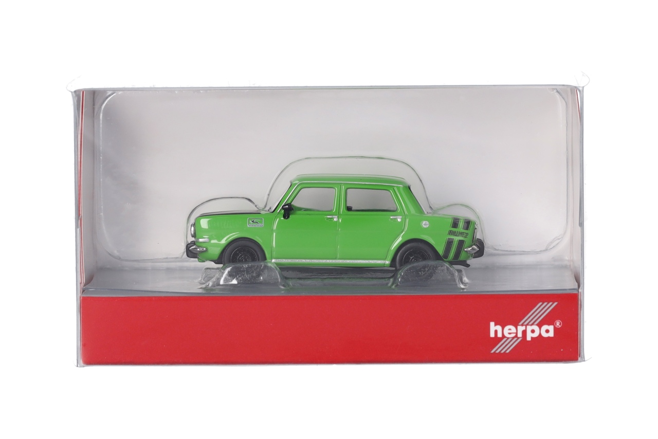 Ein Klassiker von damals ist der "Simca Rallye II" mit 82 PS mit den typischen Querstreifen am Heck sowie der mattschwarze Motorhaube. Das Vorbild, der Simca 1000 wurde 1961 vorgestellt. Der Simca 1000 Rallye II mit 1294 cm³ (82 PS) Motor folgte im September 1972.. Artikel in verschiedenen Farben produziert. Das gelbgrüne Modell "steht" auf schwarzen Felgen.