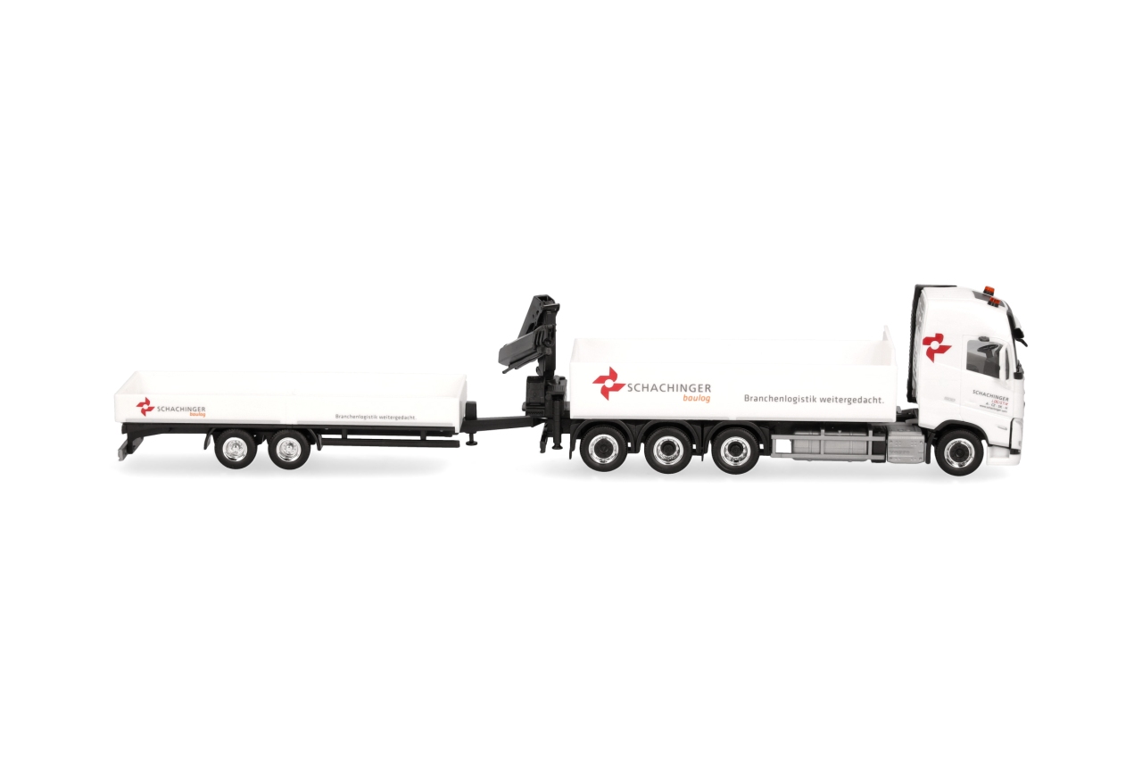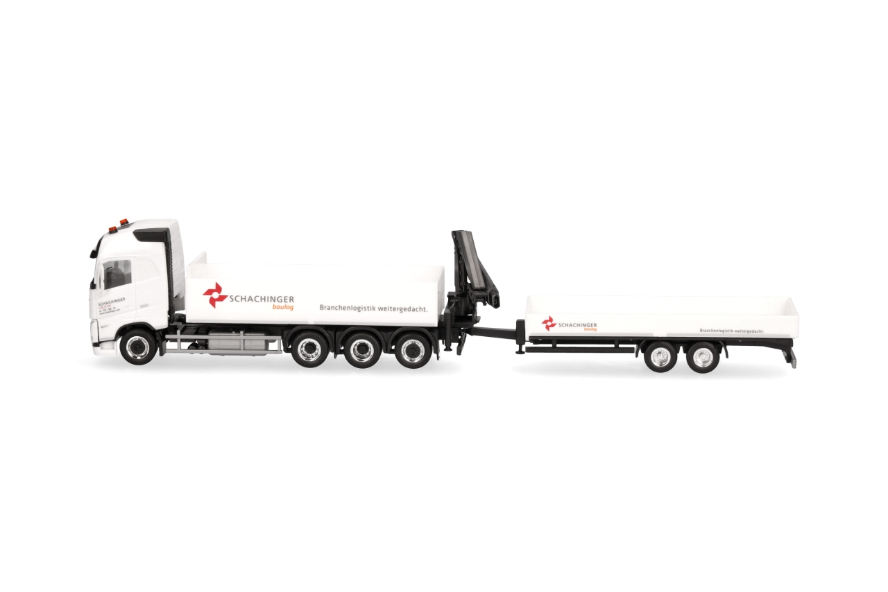 Herpa H0 Volvo FH GL 2020 Pritschen-Hängerzug mit Ladekran, Schachinger