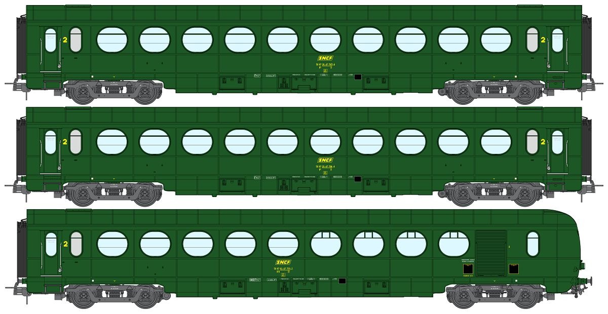 REE H0 (DC) SNCF Personenwagen-Set Saucisson B10/B10/B5d, Ep. IV, 3-tlg.