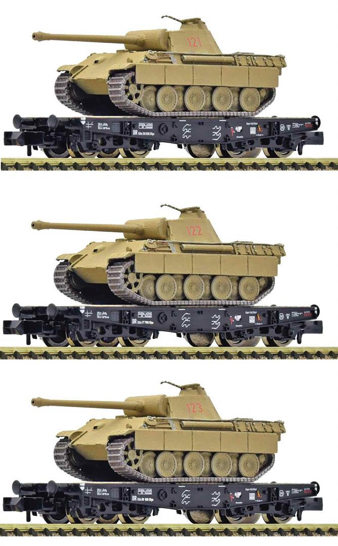 Fleischmann N DRB Schwerlastflachwagen-Set, mit Panzerladung, Ep. II, 3-tlg.