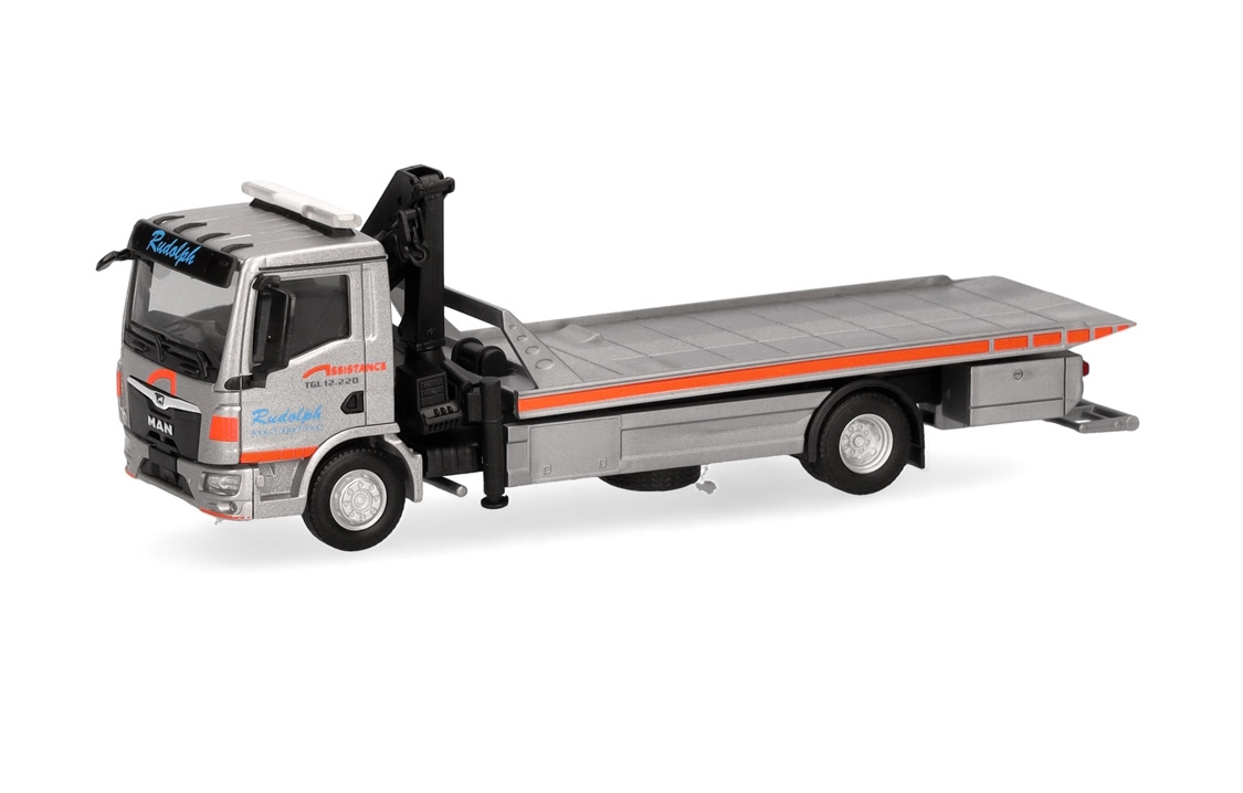 Herpa H0 MAN TGL CC Plateau Abschleppfahrzeug, Abschleppdienst Rudolph (Club) *werkseitig ausverkauft*