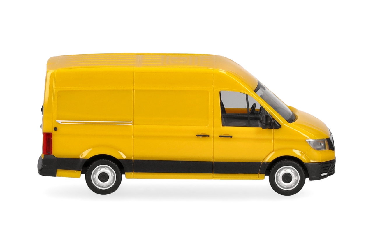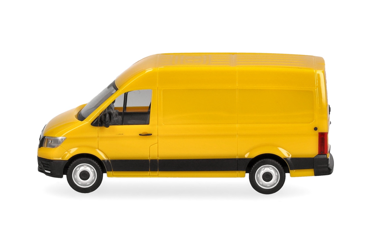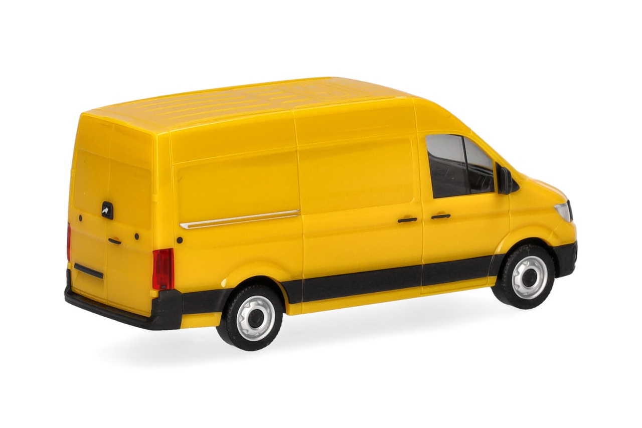 Neu im Herpa-Sortiment ist der MAN eTGE als Kastenwagen mit Hochdach, der in ginstergelber Farbgebung das Programm erweitert.