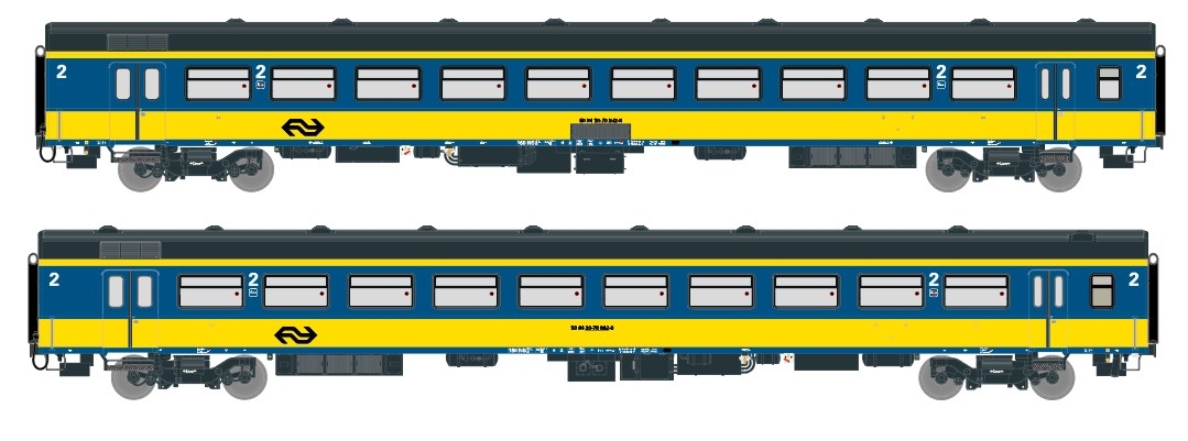 Exact-Train H0 NS Reisezugwagen-Set ICR B/B, gelb/blau, Ep. IV, 2-tlg.