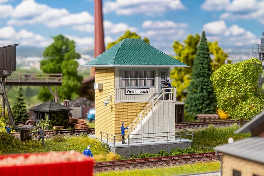 Ein kleines Highlight für die Modellbahnanlage! Die gelb gemauerte Blockstelle mit markantem, dunkelgrünem Zeltdach und weissem Holztreppenaufgang bringt mehr Betriebsamkeit auf Ihre Bahnstrecke. Perfekt, um die Anlage mit etwas detailverliebtem Realismus zu versehen.