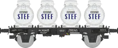 REE H0 SNCF Flachwagen, Milchcontainer STEF, Ep. III