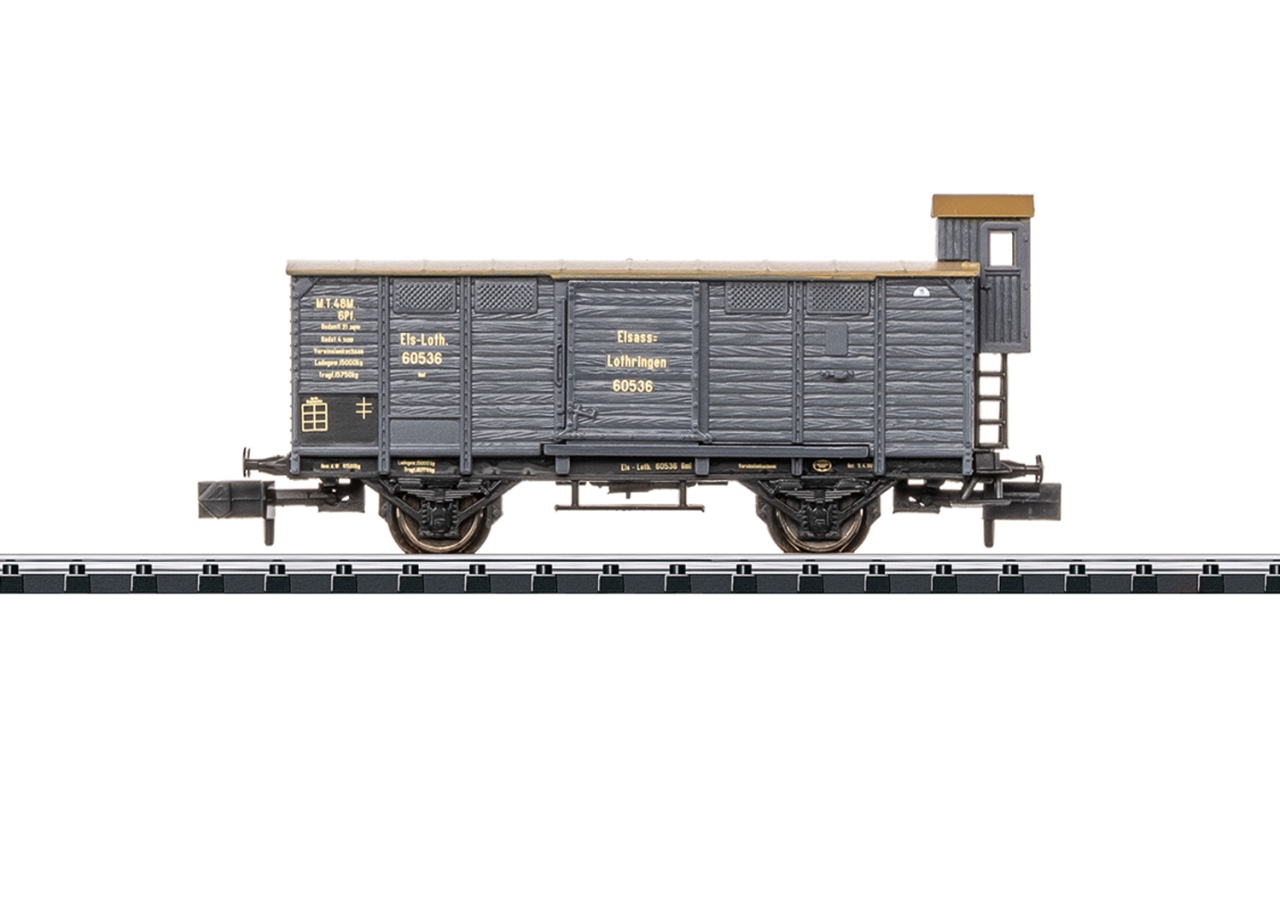 Vorbild: Gedeckter Güterwagen der Bauart G 02 mit Standard-Bremserhaus der Reichseisenbahnen in Elsass-Lothringen (EL). Betriebszustand um 1909.