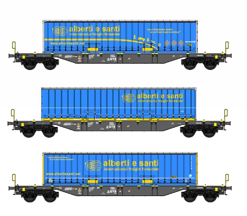 B-Models H0 GTS Containertragwagen-Set, Alberti e Santi, 3-tlg.