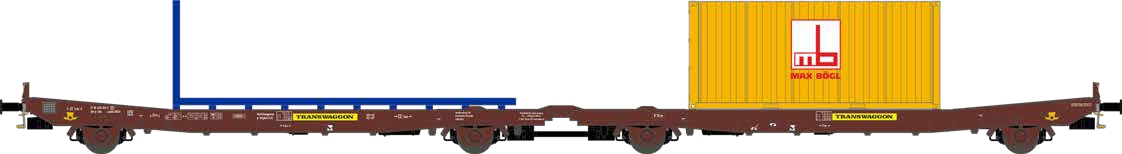 NME H0 Transwaggon Flachwageneinheit Laadks TWA 800A, BÖGL, braun, Ep. VI