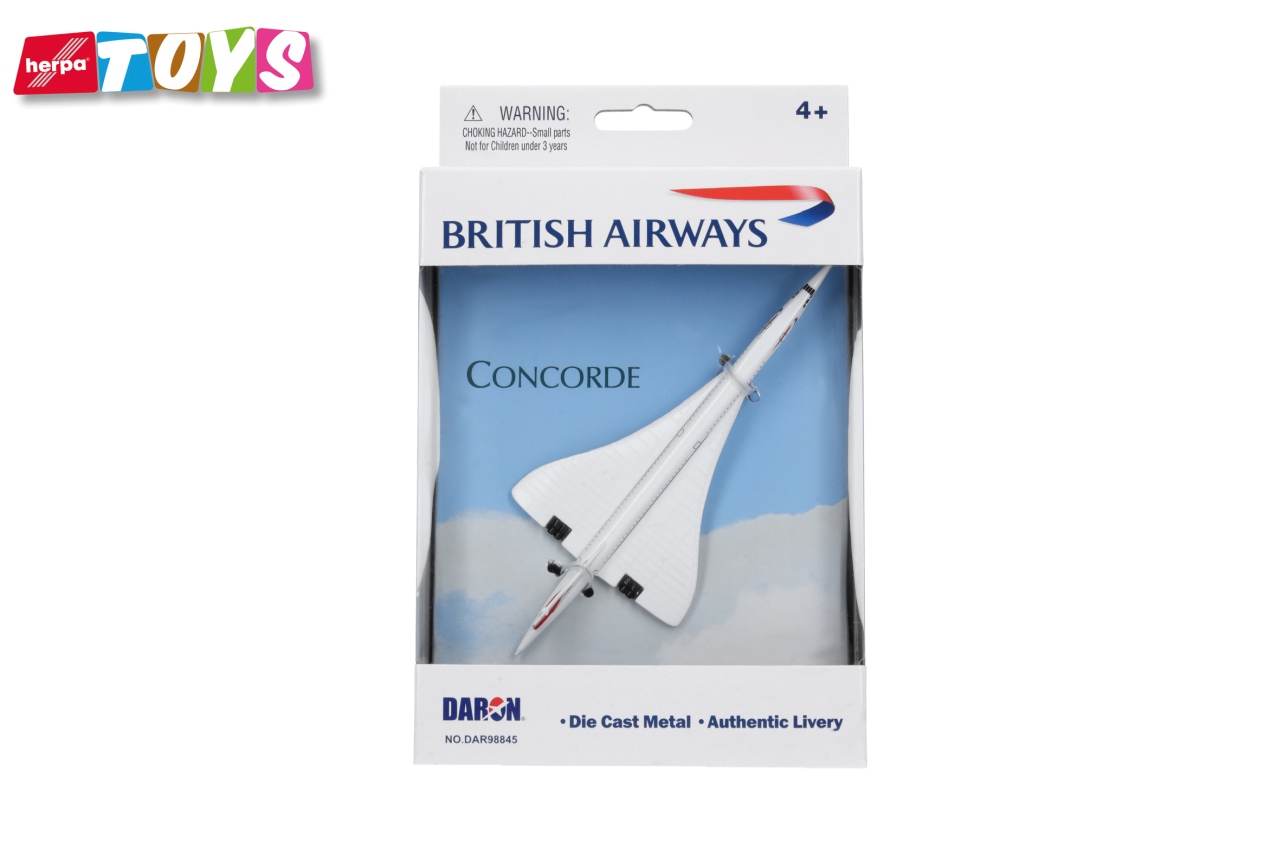 Wer träumt nicht davon, mit dem legendären Überschalljet Concorde schneller als die Schallgeschwindigkeit zu fliegen! Diese robusten Flugzeuge aus Metalldruckguss und Kunststoff bieten Kindern ab drei Jahren eine tolle Möglichkeit, ihre Reise in die aufregende Welt der Luftfahrt zu starten! Achtung! Nicht für Kinder unter drei Jahren geeignet. Erstickungsgefahr wegen verschluckbarer Kleinteile.