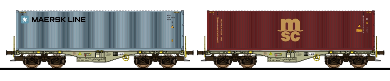 ESU H0 AAE Containertragwagen-Set Sgmmns, Maersk Line/MSC, 2-tlg.