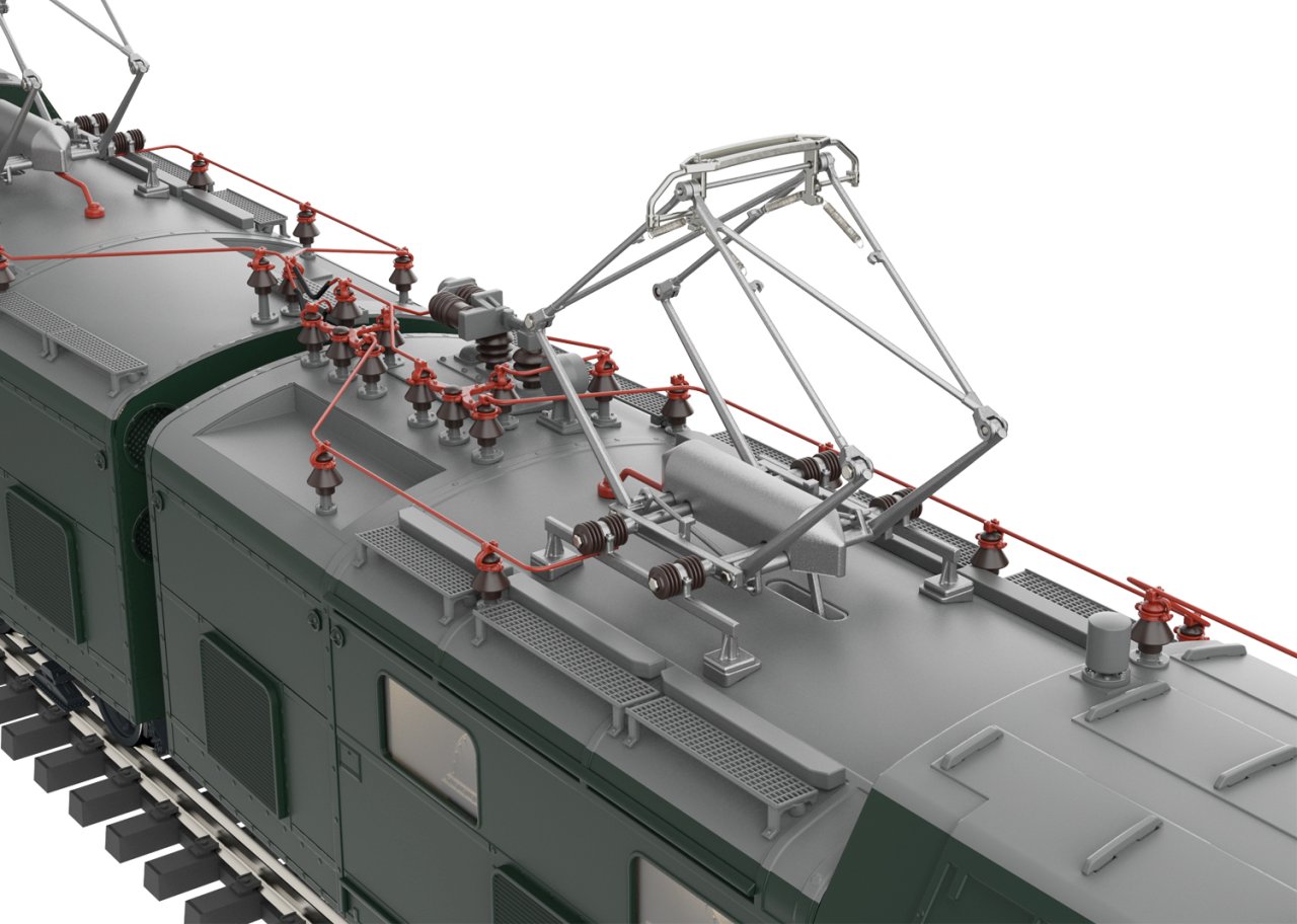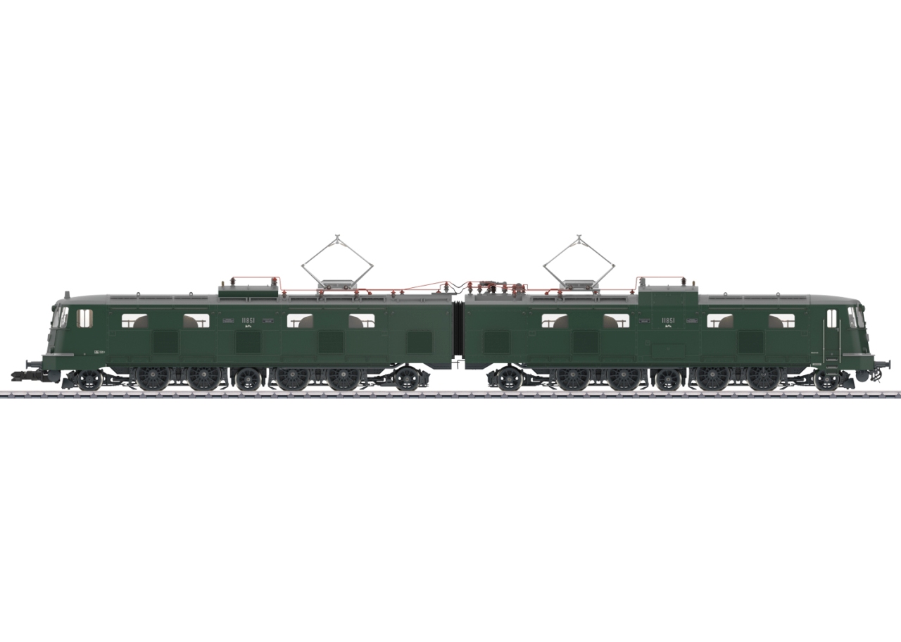 Modell: Komplett neukonstruiertes, höchstdetailliertes High-Class Vollmetall-Profimodell. Fahrgestell mit Hauptrahmen aus Zinkdruck- und Messingguss, Lokaufbau aus Messingblech. Ansetzteile aus Messing-Schleuderguss. Mit mfx Digital-Decoder und 32 Funktionen, Stromspeicher parametrisierbar. Umfangreiche Licht- und Soundfunktionen. Für ein qualitativ höchstwertiges Sounderlebnis sorgt je Lokteil ein Markenlautsprecher in HiFi-Qualität.Betrieb mit Wechselstrom, Gleichstrom, Märklin Digital und DCC möglich. Je Lokteil ein zentral eingebauter und eigens für dieses Modell konstruierter Bühler-Hochleistungsmotor mit Antrieb auf alle Achsen! Im Digitalbetrieb motorisch heb- und senkbare, vorbildgerechte Scherenstromabnehmer. Weisses 3-Licht-Spitzensignal mit LEDs im Wechsel mit weissem schweizerischen Schlusslicht, digital schaltbar.Warmweisse LED-Beleuchtung im Führerstand und im Maschinenraum/-gang, ebenso sind die Fahrpulte in den Führerständen beleuchtet. Führerstandstüren zum Öffnen. Aufwendige, höchstdetaillierte Nachbildung der Inneneinrichtung von Führerstand und Maschinenraum, Führerstand mit eingebauter Lokführerfigur. Griffstangen aus Metall und viele weitere angesetzte Details wie: Schilder, Scheibenwischer, Pfeife u.a. Pufferbohlen mit Federpuffern und angesetzten Bremsleitungen. Hinten serienmässig montierte, fernbedienbare Telexkupplung hinten gegen beigefügte Schraubenkupplungen austauschbar. Vorne vorbildgerechte Schraubenkupplung. Telexkupplung für vorn im Lieferumfang. Mit Echtheitszertifikat und einer in Metall gegossenen Replik des Fabrikschildes vom grossen Vorbild.