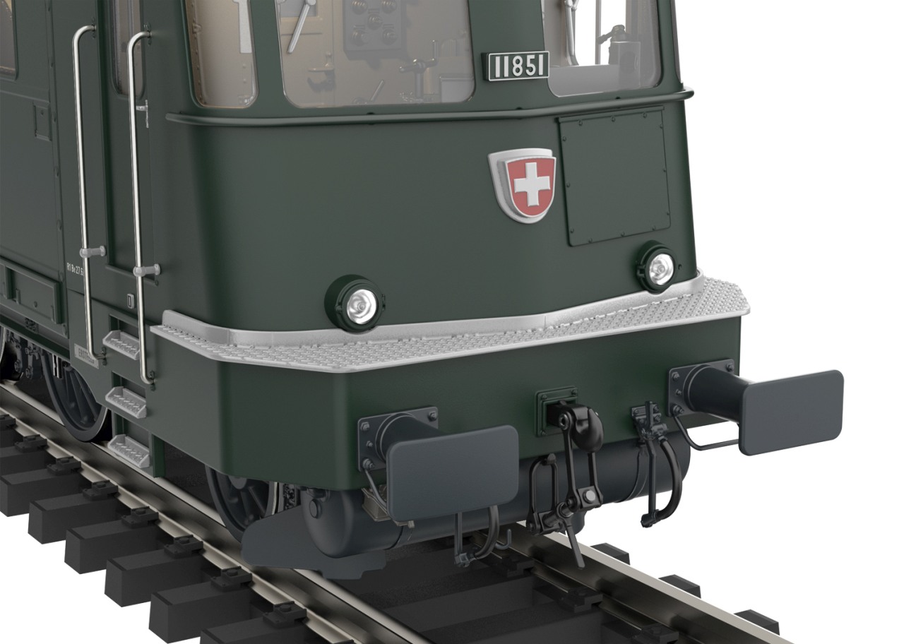 Modell: Komplett neukonstruiertes, höchstdetailliertes High-Class Vollmetall-Profimodell. Fahrgestell mit Hauptrahmen aus Zinkdruck- und Messingguss, Lokaufbau aus Messingblech. Ansetzteile aus Messing-Schleuderguss. Mit mfx Digital-Decoder und 32 Funktionen, Stromspeicher parametrisierbar. Umfangreiche Licht- und Soundfunktionen. Für ein qualitativ höchstwertiges Sounderlebnis sorgt je Lokteil ein Markenlautsprecher in HiFi-Qualität.Betrieb mit Wechselstrom, Gleichstrom, Märklin Digital und DCC möglich. Je Lokteil ein zentral eingebauter und eigens für dieses Modell konstruierter Bühler-Hochleistungsmotor mit Antrieb auf alle Achsen! Im Digitalbetrieb motorisch heb- und senkbare, vorbildgerechte Scherenstromabnehmer. Weisses 3-Licht-Spitzensignal mit LEDs im Wechsel mit weissem schweizerischen Schlusslicht, digital schaltbar.Warmweisse LED-Beleuchtung im Führerstand und im Maschinenraum/-gang, ebenso sind die Fahrpulte in den Führerständen beleuchtet. Führerstandstüren zum Öffnen. Aufwendige, höchstdetaillierte Nachbildung der Inneneinrichtung von Führerstand und Maschinenraum, Führerstand mit eingebauter Lokführerfigur. Griffstangen aus Metall und viele weitere angesetzte Details wie: Schilder, Scheibenwischer, Pfeife u.a. Pufferbohlen mit Federpuffern und angesetzten Bremsleitungen. Hinten serienmässig montierte, fernbedienbare Telexkupplung hinten gegen beigefügte Schraubenkupplungen austauschbar. Vorne vorbildgerechte Schraubenkupplung. Telexkupplung für vorn im Lieferumfang. Mit Echtheitszertifikat und einer in Metall gegossenen Replik des Fabrikschildes vom grossen Vorbild.