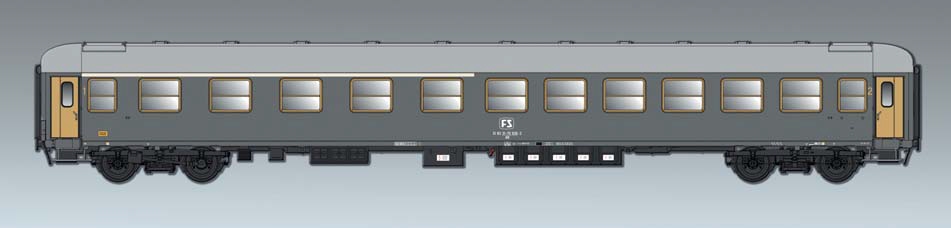 1./2.-Klasse-Wagen Typ UIC-X 1964 der FS mit eloxierten Aluminiumtüren, schiefergraue Lackierung.