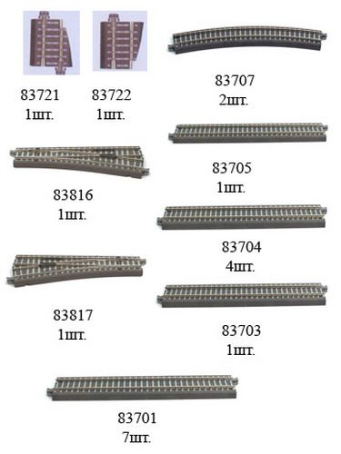 Mit diesem Set lässt sich das Gleisoval der Sets, Art.-Nr.: 01406, 01411 und 01412 auf ein Oval mit zweigleisigem Bahnhof ausbauen. Im Falle der Nutzung abschaltbarer Gleisabschnitte werden zusätzlich ein Tastenpult (Art.-Nr.: 08211) sowie Schaltlitze (Art.-Nr.: 08972) benötigt.