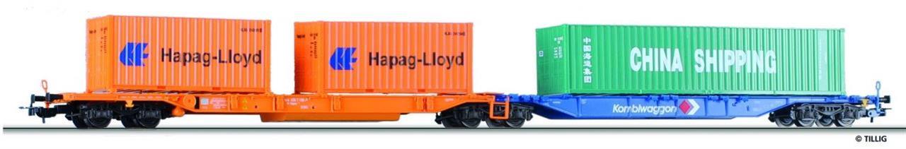 Tillig H0 DB Doppeltragwagen Sdggmrs 744 Kombiwaggon Hapag/China Shipping *AUSVERKAUFT*