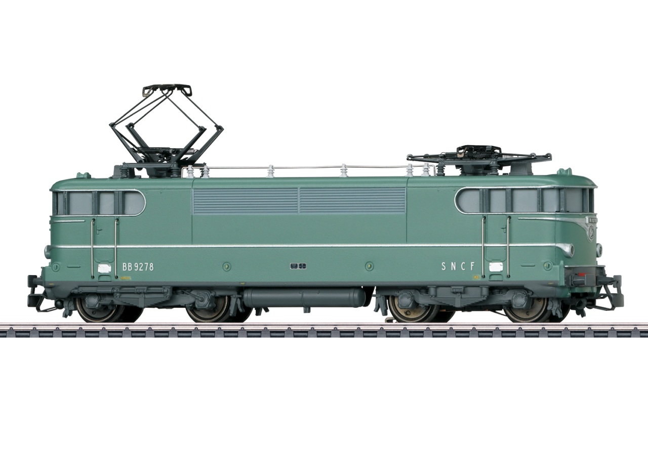 Vorbild: Elektrolokomotive Bauart BB 9200 der Französischen Staatsbahnen (SNCF). Grüne Grundfarbgebung. Mit Scheren-Stromabnehmern. Lok-Betriebsnummer BB 9278. Betriebszustand Mitte der 1970er-Jahre.
