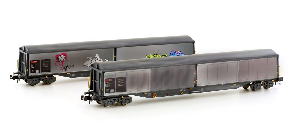 Hobbytrain N SBB Schiebewandwagen-Set Habils, mit Graffiti, gealtert, Ep. V, 2-tlg. *werkseitig ausverkauft*