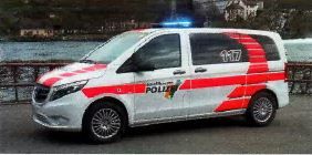 MB Vito des Polizeicorps Schaffhausen. Feine Bedruckung mit Signalbalken auf dem Dach.