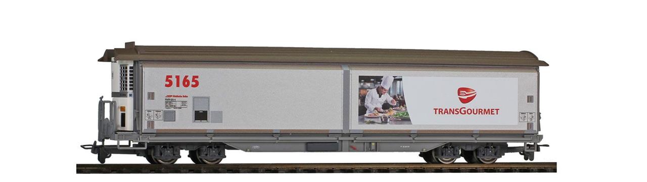 Der mit modernisiertem rundem Kühlgerät ausgerüstete Kühl-Schiebewandwagen 5165 wirbt seit einiger Zeit mit verschiedenen Motiven für den zur Coop-Gruppe gehörenden Fullservice-Spezialisten für Gastronomie und Gemeinschaftsverpflegung "TransGourmet".