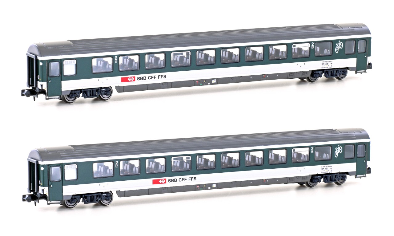 Hobbytrain N SBB Reisezugwagen-Set UIC-Z1 B ex. Bpm, grün/grau, Ep. V-VI, 2-tlg.
