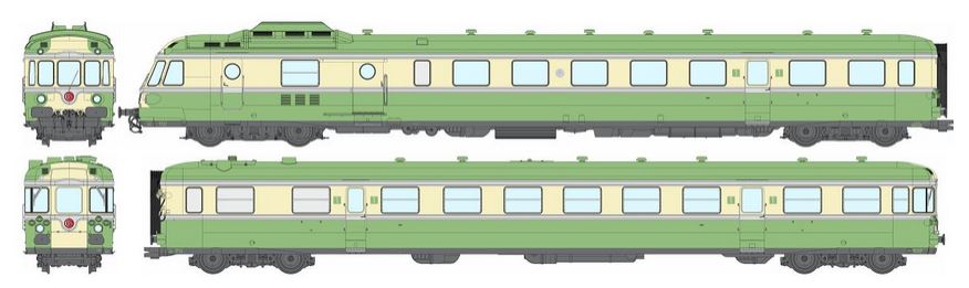 REE H0 (DC Sound) SNCF Dieseltriebzug RGP 1 X 2728, grün/beige, Ep. III-IV, 2-tlg.