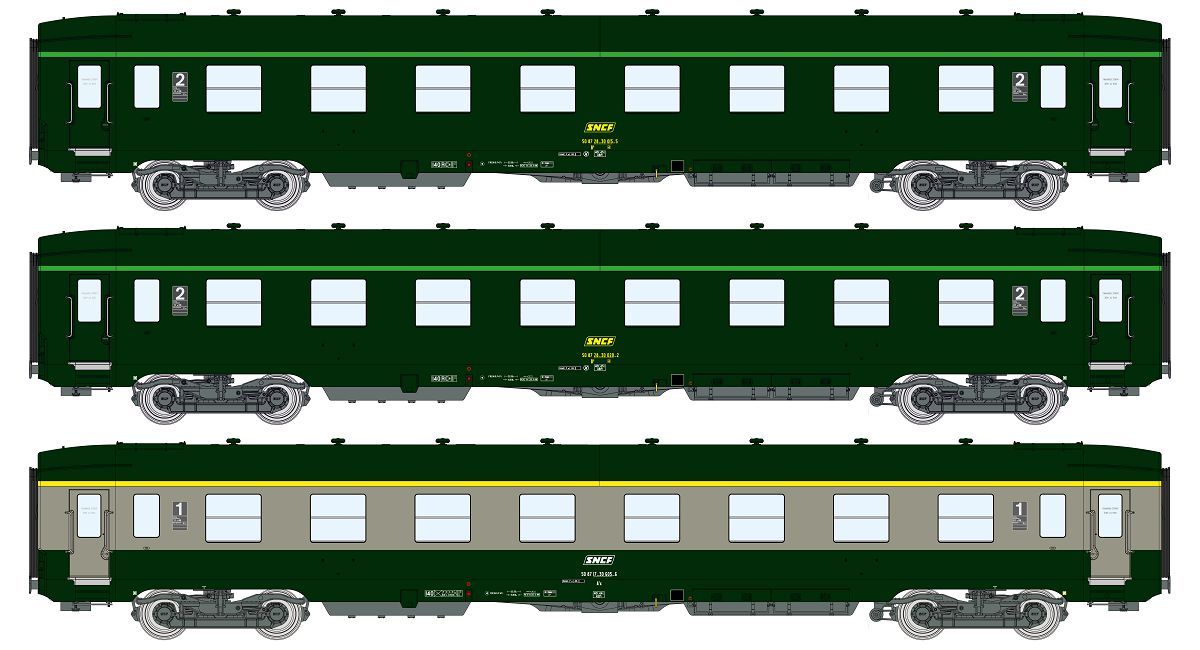 REE H0 SNCF Personenwagen-Set DEV AO A7x/B8/B8, grün/grau, Ep. IV-V, 3-tlg.