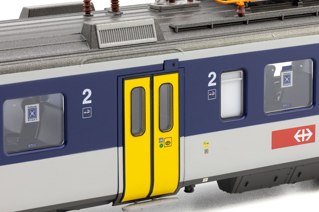 Das aus drei Wagen bestehende Modell wird durch stromführende Kurzkupplungen verbunden. Die Antriebstechnik wurden im Mittelwagen zusammengefasst. Dort befindet sich auch der kräftige Motor, welcher seine Kraft über Kardanwellen auf alle vier Achsen entfaltet, zwei Schwungmassen kultivieren die Laufeigenschaften. Für zusätzliche Reibung sorgen zwei diagonal auf den mittleren Achsen angeordnete Haftreifen. Ebenfalls im Mittelwagen befindet sich die Hauptplatine mit PluX22-Schnittstelle. Bei den digitalen Modellen sind diese mit einem PIKO XP5.1 Decoder ausgestattet. Standardmässig sind alle drei Wagen mit je einer Innenbeleuchtung versehen. Nebst der Führerpult- und Führerstandsbeleuchtung ist der modernisierte Triebzug mit blinkenden Zwangstürschliessungslampen oberhalb der Einstiegstüren ausgestattet. Dank der kurzgekuppelten Stirnkupplung können mehrere Züge zusammengekoppelt werden.