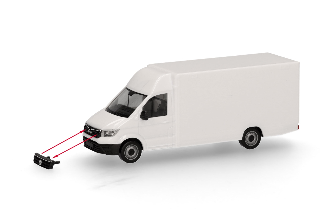 Herpa H0 MiniKit: MAN TGE/VW Crafter Paketverteilfahrzeug, weiss