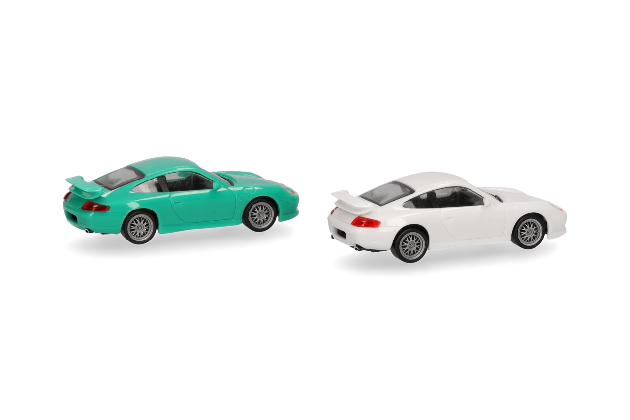 Herpa H0 MiniKit: Porsche 911 GT3 Grandprix, weiss und hellgrün (Inhalt: je 1 Stk.)