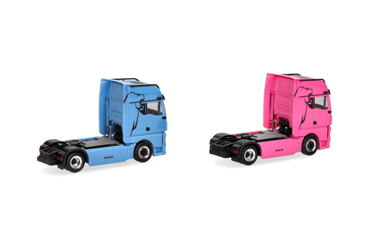 Herpa H0 MAN/WOMAN eTGX GX Zugmaschinen 2-achs, hellblau/pink (Inhalt: je 1 Stk.)