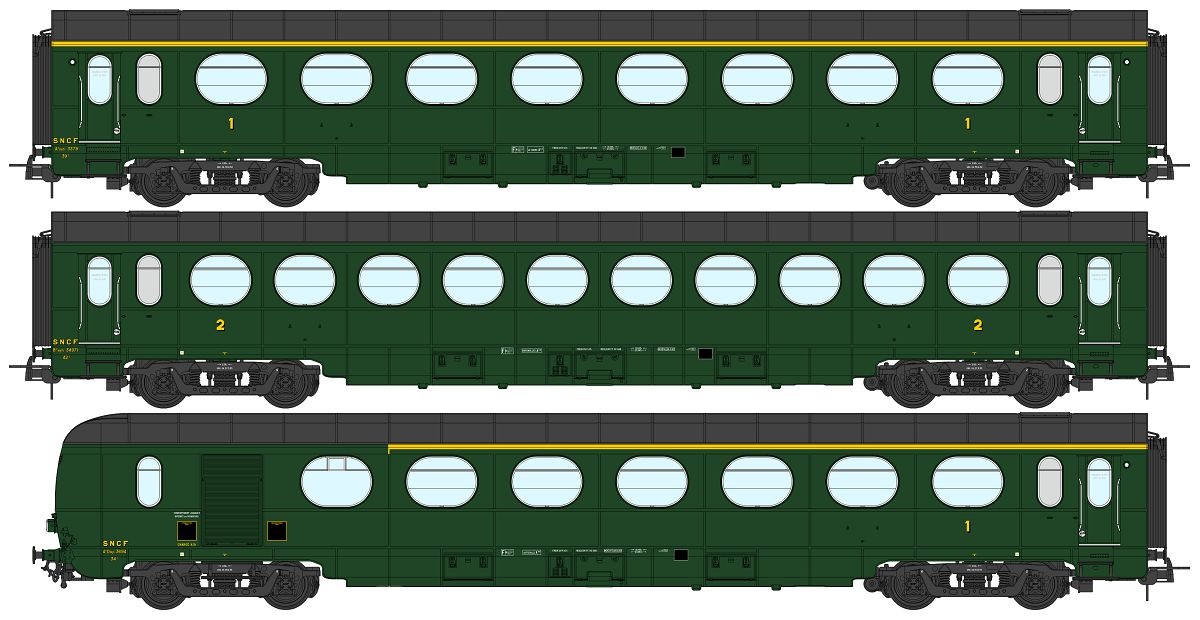 REE Modèles H0 (DC) SNCF Personenwagen-Set Saucisson A8/B10/A6d, Ep. IIIb, 3-tlg.