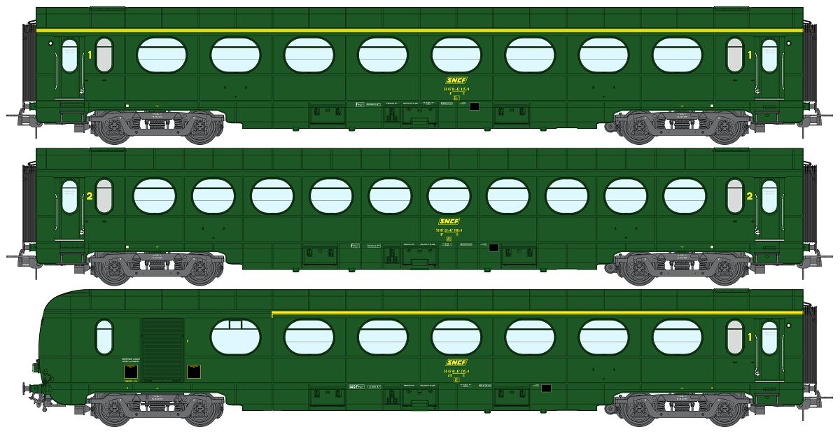 REE H0 (DC) SNCF Personenwagen-Set Saucisson A8/B10/A6d, Ep. IV, 3-tlg.