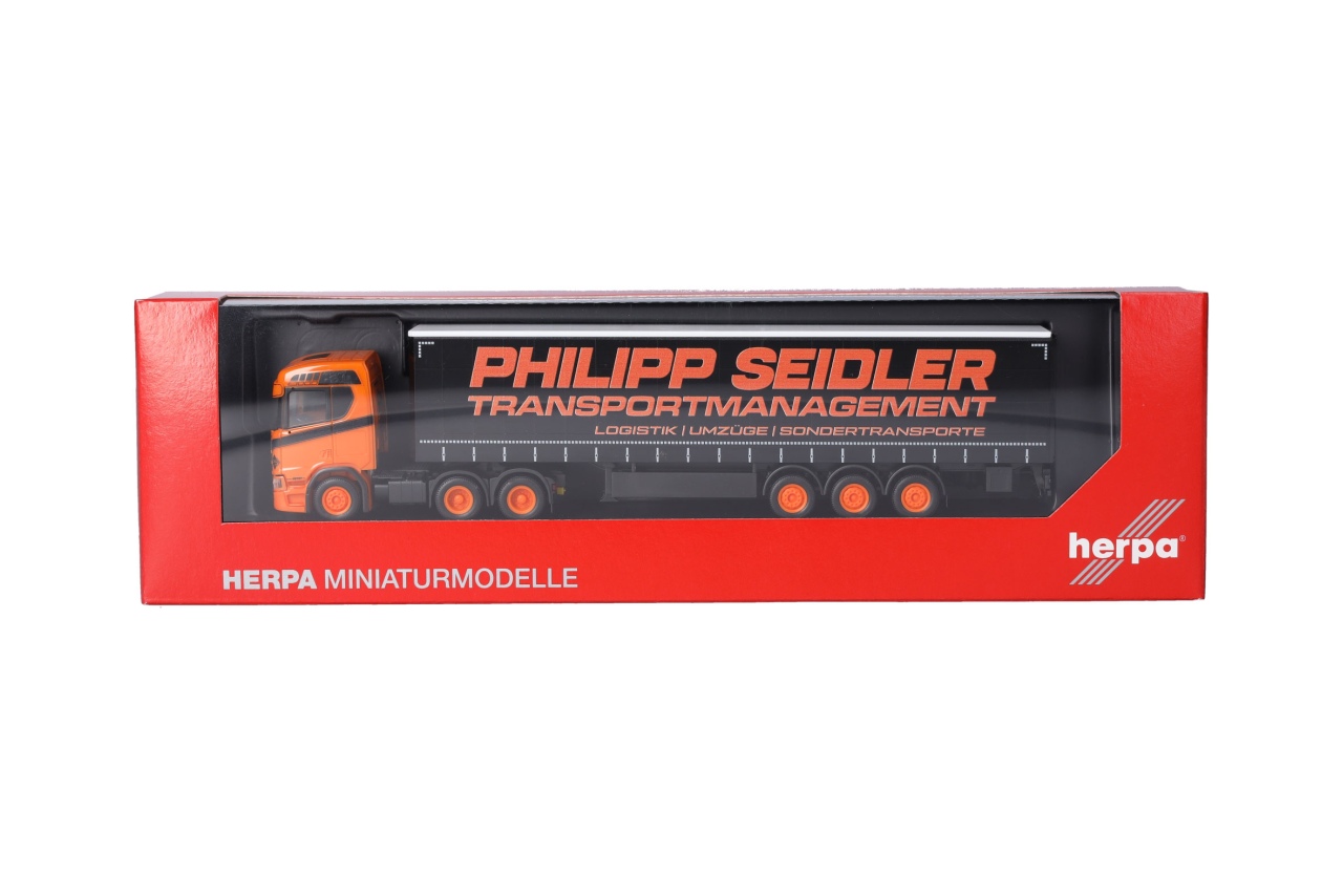 Herpa H0 Scania CR20 ND Gardinenplanen-Sattelzug, Philipp Seidler