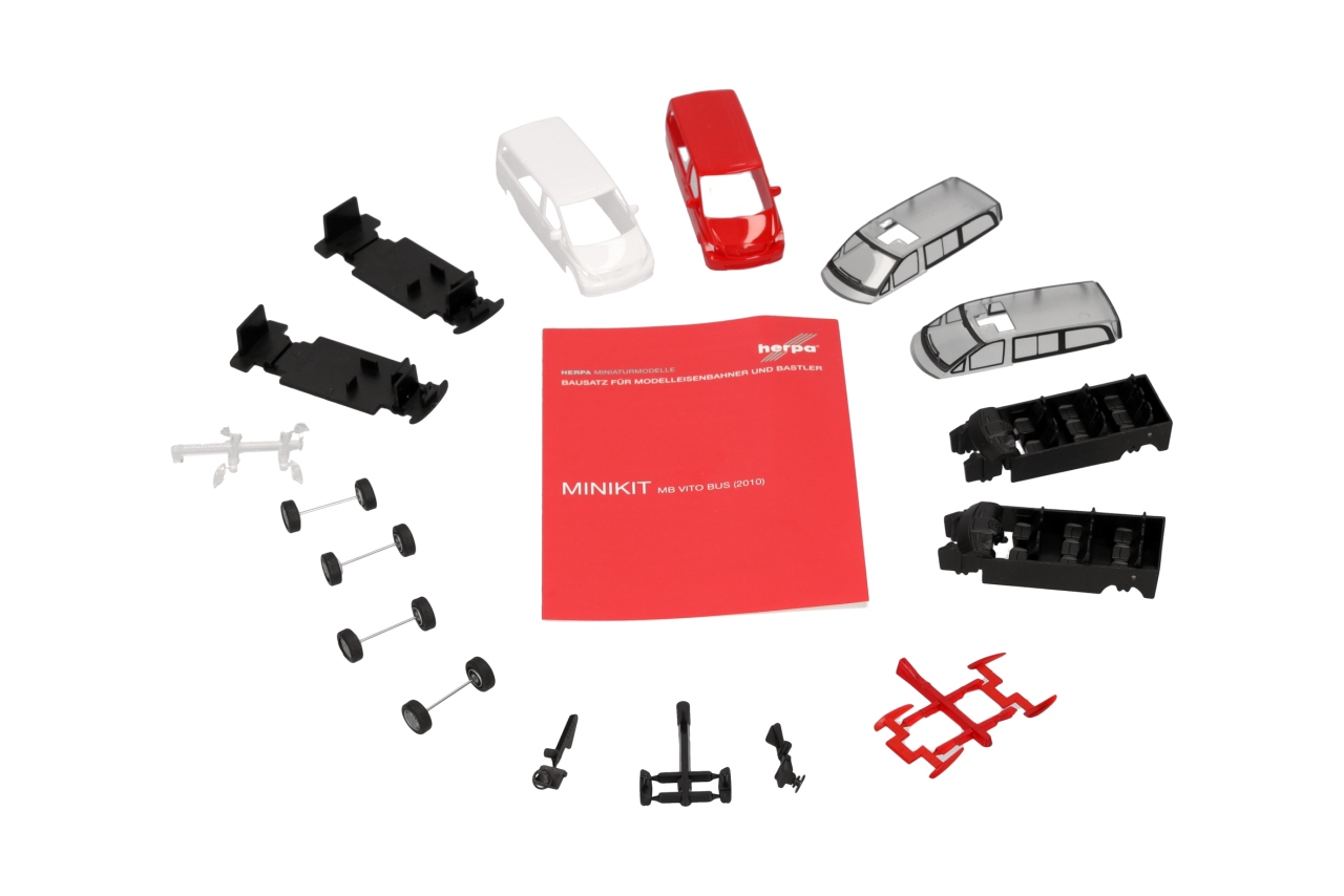 Herpa H0 MiniKit: MB Vito Bus 2010, weiss und rot (Inhalt: je 1 Stk.)