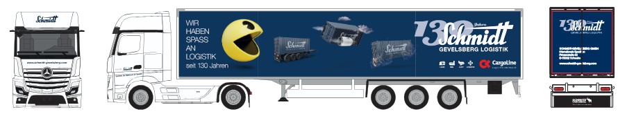 Herpa H0 MB Actros 18 L Gigaspace Koffer-Sattelzug Schmidt Gevelsberg/Pacman *Sonderserie*
