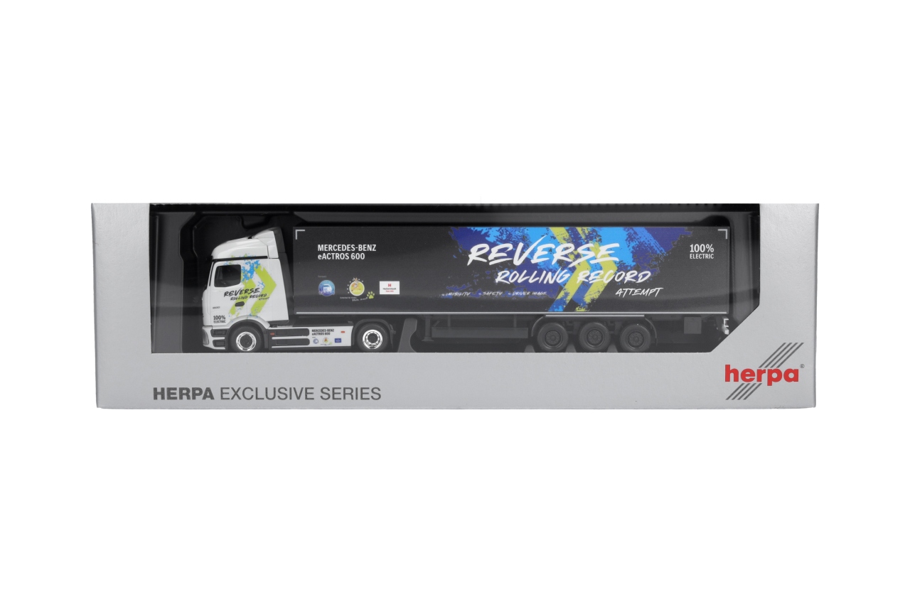 Herpa H0 MB eActros 600 ProCabin Koffer-Sattelzug, Reverse Rolling Record
