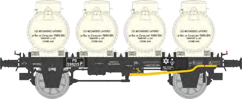 REE H0 PO Flachwagen, Milchcontainer MESSAGERIES LAITIERES, Ep. II