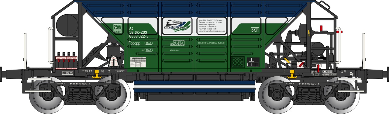 Albert Modell H0 ZOS Zvolen Selbstentladewagen Faccpp, blau/grün, Ep. VI