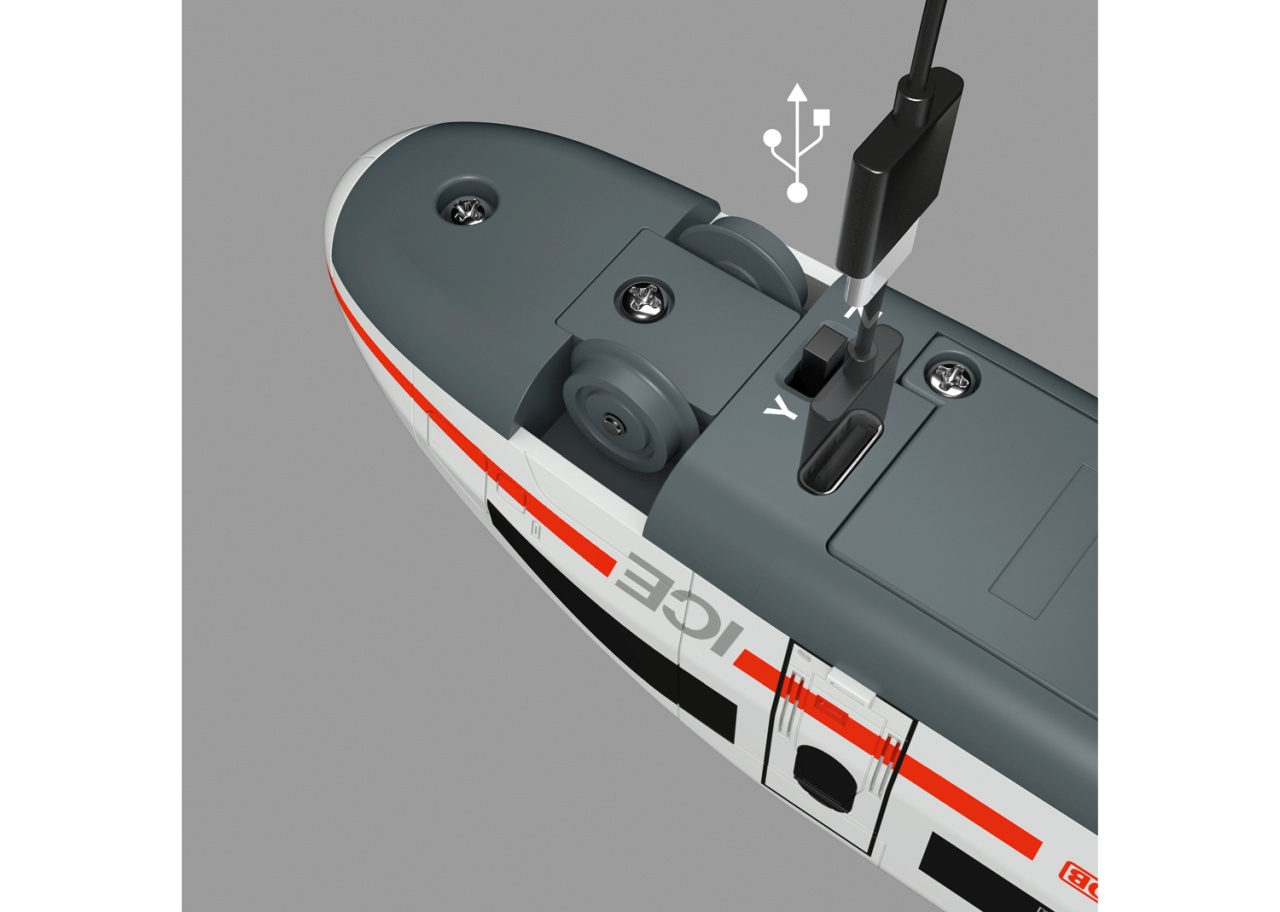 Bahnhöfe und das Einfahren von Zügen bringen Kinderaugen zum Leuchten. Das kann nun auch im Kinderzimmer passieren, denn die Märklin my world Startpackung "ICE 3” enthält einen 5-teiligen Hochgeschwindigkeitszug mit 63 cm Länge, der mit seinem schnittigen Design über die selbst zusammengesteckte Strecke rast. Die abnehmbaren Dächer der drei Zwischenwagen sorgen für viele Spielmöglichkeiten. Die detailreiche Gestaltung des Schnellzugs orientiert sich am Original und wird Fan-Herzen höherschlagen lassen. Die verschiedenen Weichen bieten noch mehr Spielraum beim Zusammenbau. Stück für Stück entstehen grossartige Streckenverläufe durch das Spielzimmer, die sich mit Sets separat erhältlicher Kunststoffgleise noch erweitern lassen. Das Zusammensetzen der einzelnen Teile hilft dabei, die motorischen Fähigkeiten und das Verstehen von Zusammenhängen zu schulen. Volle Kontrolle mit dem Märklin Power Control StickDer kabellose Märklin Power Control Stick kann von Kindern mit nur einer Hand bedient werden. Damit lässt sich der Zug vorwärts und rückwärts in jeweils drei Geschwindigkeitsstufen fahren. Ausserdem kann der Zug auf Knopfdruck am Control Stick verschiedene Soundeffekte abspielen und sein Zweilicht-Spitzensignal anschalten. Sicheres Spielen mit MärklinDamit auch schon die Kleinsten mit dem Modellzug von Märklin spielen können, steht Sicherheit an oberster Stelle. Die einzelnen Abteile der Züge sind über sichere Magnetkupplungen miteinander verbunden, die keine kleinen Einzelteile haben und einfach zu bedienen sind. Der motorisierte Triebkopf mit wiederaufladbarem Akku ist kindersicher gestaltet und daher das perfekte Spielzeug für den Einstieg in die Modellzugwelt ab 3 Jahren. Der Akku mit passendem Ladekabel und die Batterien für den Power Control Stick (2x AAA-Batterien) sind im Lieferumfang enthalten, sodass der Spielspass direkt losgehen kann. Die einzelnen Schienenteile lassen sich ganz einfach zusammenstecken und alle Teile des Spielsets sind besonders robust gestaltet. Somit ist das Spielset perfekt für grosse und kleine Fans von Zügen und Modelleisenbahnen geeignet.