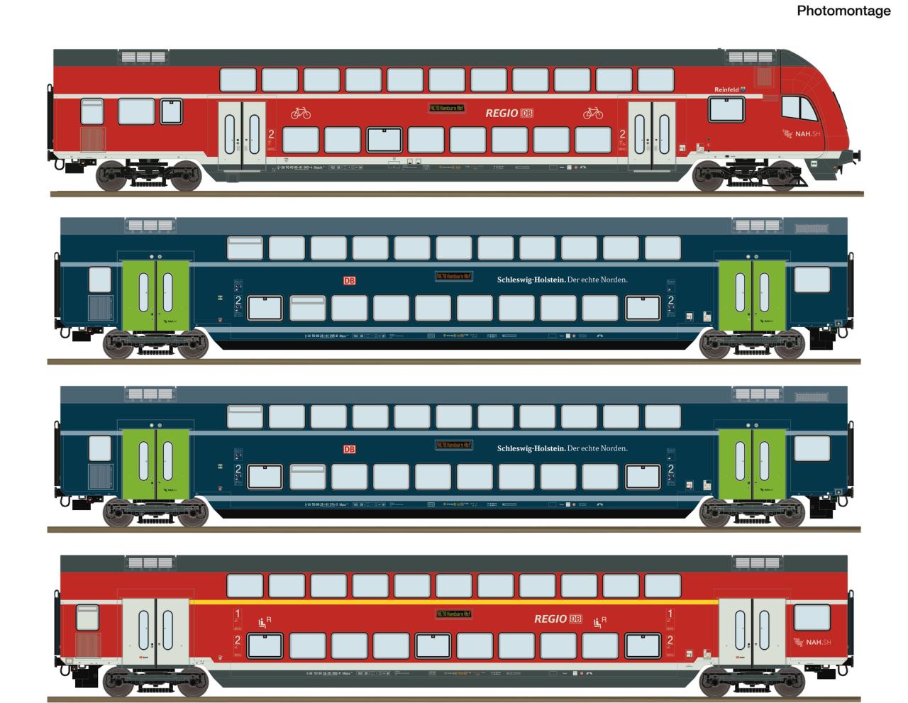 Roco H0 (DC Digital) DB AG Doppelstockwagen-Grundset, Schleswig-Holstein, Ep. VI, 4-tlg.