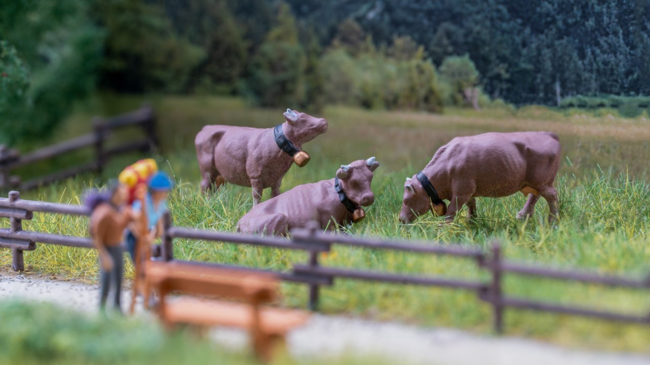 Der Sound der Kuhglocken wurde unter hohem persönlichem Einsatz vom vom Chef selbst auf einer Bergtour aufgenommen. Und das, obwohl er ganz ordentlich Respekt vorm Vieh hat! Nutzt aber nichts, denn wir wollen Ihnen diese wunderschönen Töne für Ihre Modell-Landschaft nicht vorenthalten. Mit dabei: die drei "Allgäu-Schönheiten" Alma, Betty und Kati!