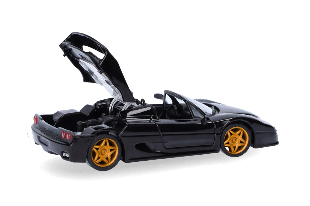 Der beliebte Spider des Ferrari F50 wird von Herpa aktuell mit schwarzer Karosserie und goldenen Felgen produziert.