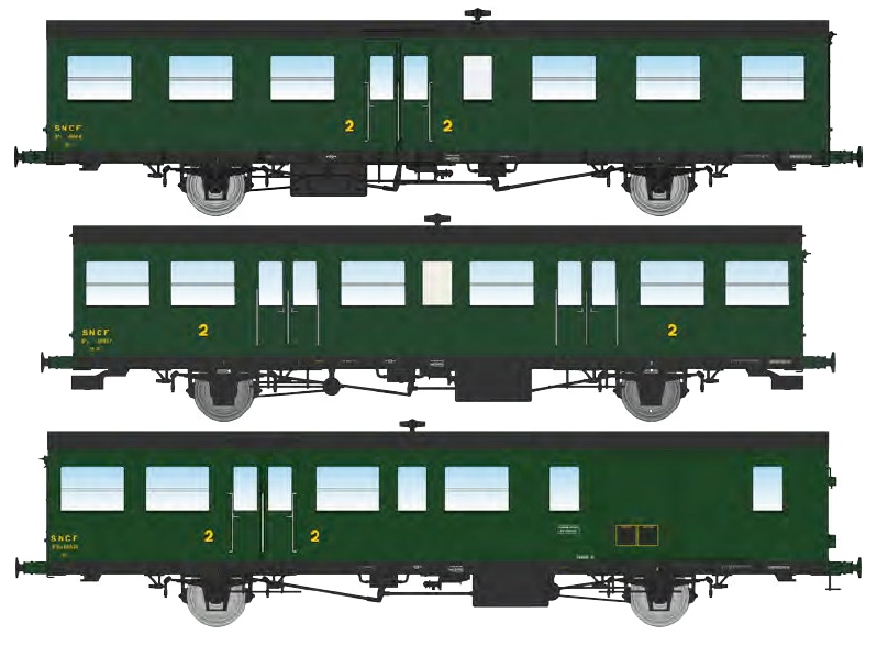 3er-Set Personenwagen "Sud Ouest", grün, Ep. IIIb