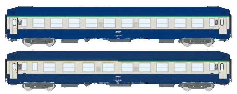 REE H0 SNCF Liegewagen-Set UIC-Y B9c9x/A4c4B5c5, blau/grau, Ep. IV-V, 2-tlg.