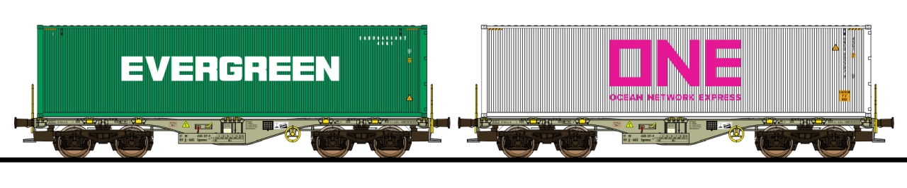 ESU H0 AAE Containertragwagen-Set Sgmmns, Evergreen/ONE, 2-tlg.
