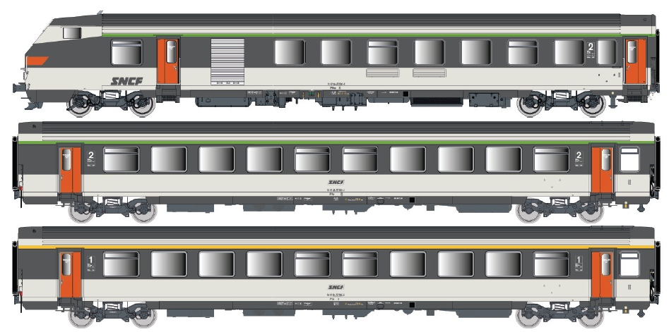 LS Models H0 (DC) SNCF Reisezugwagen-Set Corail B6Dux/B11tu/A10tu, Ep. IV, 3-tlg.