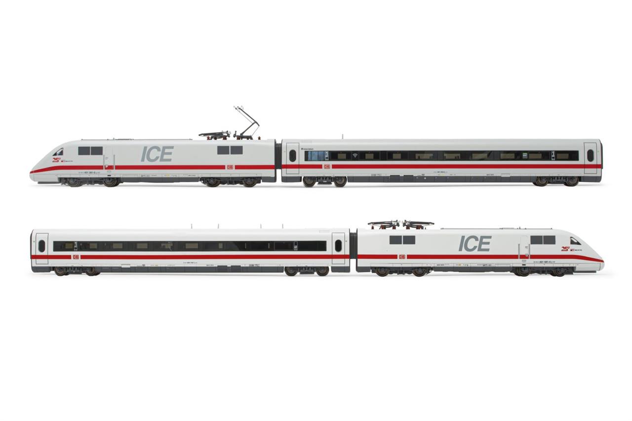 Ein Wunsch vieler Modelleisenbahner. Lima Expert erfüllt diesen Wunsch und bringt 2020 einen massstäblichen Triebzug ICE 1. Das Grundset ist 4-teilig und besteht aus 2 Triebköpfen (einer mit Antrieb) und zwei Zwischenwagen. Der Antrieb erfolgt über alle 4 Achsen dank einem starken Mittelmotor mit zwei Schwungmassen. Beide Triebköpfe besitzen zusätzlich eine Digitalschnittstelle zum nachträglichen Digitalisieren. Gekuppelt werden die einzelnen Wagen mit einer Kurzkupplungskinematik und die Faltenbälge zwischen den Wagen sind gefedert. Feine Drehgestellgravuren, fein konstruierte Stromabnehmer und ein weiss/rotes Spitzenlicht runden dieses Modell ab.
