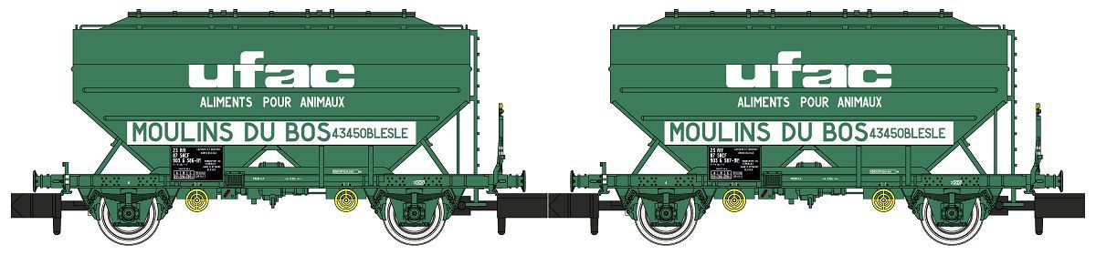 REE N SNCF Getreidesilowagen-Set, UFAC Moulins Du Bos, Ep. IV, 2-tlg.