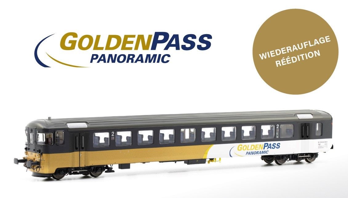 Auf Wunsch vieler Modelleisenbahner einen farblich passenden Steuerwagen zum GoldenPass Set von Piko zu besitzen hat uns bewegt den Steuerwagen von ESU in der GoldenPass Lackierung zu produzieren. Ausführung mit Falttüren.