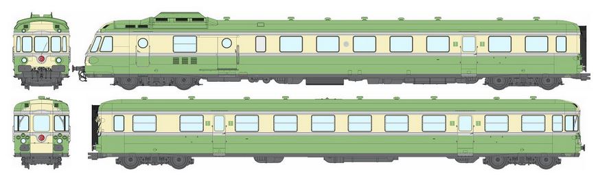 REE H0 (DC) SNCF Dieseltriebzug RGP 1 X 2737, grün/beige, Ep. III-IV, 2-tlg.